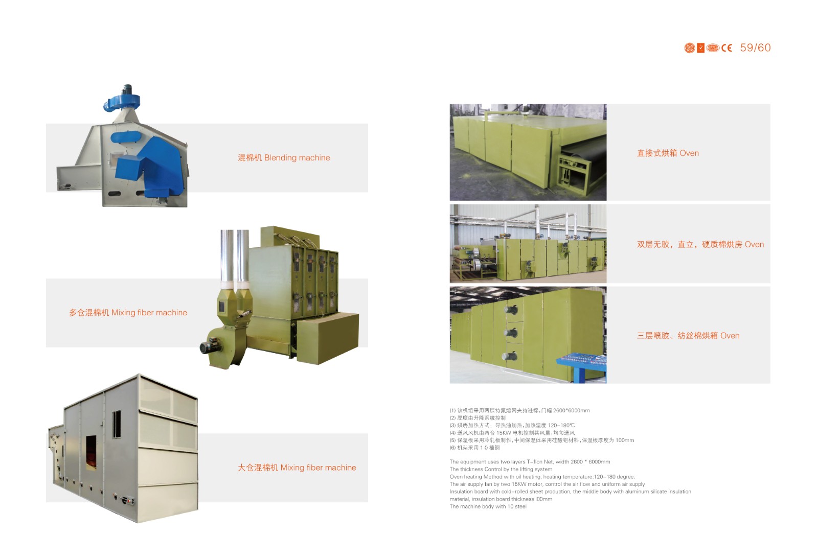 1)機(jī)器功能:對(duì)鋪好的棉進(jìn)行高溫烘烤處理,讓棉進(jìn)行粘合固定。