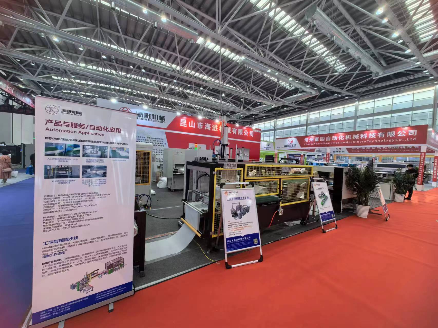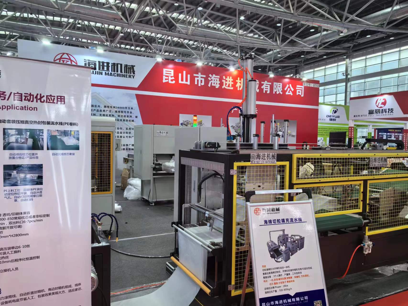 本次展會我公司參展的產(chǎn)品有枕芯自動(dòng)拍打裝袋真空壓縮機(jī),枕芯自動(dòng)打卷裝袋機(jī),自動(dòng)紙箱打包機(jī)等三款自動(dòng)化設(shè)備,引起廣大新老客戶好評!